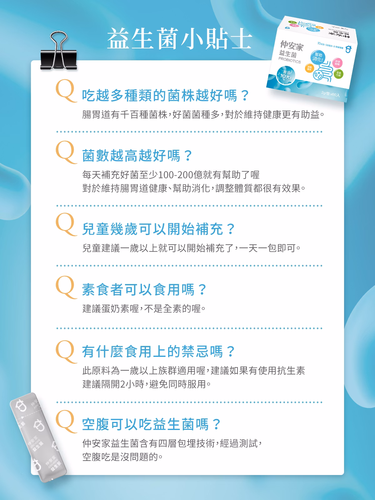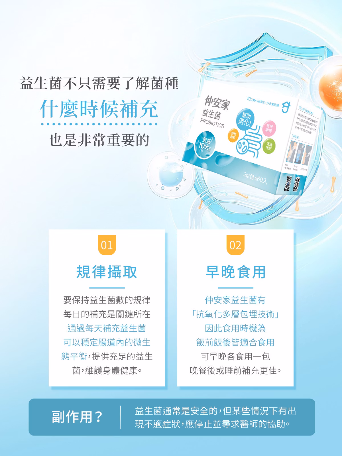 - 避免與抗生素同時使用而降低效果,建議間隔2小時以上較佳。